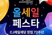 CJ제일제당이 창립 72주년을 기념해 인기 제품을 특가에 선보인다. CJ제일제당은 공식 온라인몰 ‘CJ더마켓’에서 창립 72주년을 기념해 ‘올 세일 페스타(올세페)’ 프로모션을 11월 1일부터 열흘간 진행한다고 30일 밝혔다. 이번 ‘올세페’는 오는 11월 5일 CJ제일제당 창립 72주년을 맞아 마련된 연중 최대 규모의 할인 행사다. ‘비비고 왕교자’, ‘비비고 베이직 포기배추김치’, ‘햇반’, ‘스팸’ 등 1000여 개의 인기 제품을 최대 75% 할인된 가격에 선보인다. 행사 기간 동안 매일 선착순으로 최대 20% 할인 쿠폰과 적립금 3000원을 지급하며, 구매 고객에게는 11월 내 사용 가능한 무료배송 쿠폰도 제공한다. 또 창립기념 특별 이벤트로 매일 72명을 추첨해 약 3만 원 상당의 제품 키트를 증정한다. 구성품은 ‘햇반 컵반’, ‘스팸 싱글 클래식’, ‘백설 슈가라이트 저당쌈장’, ‘비비고 컵떡볶이’, ‘CJ 바삭칩 오리지널’ 등 인기 간편식과 간식류로 구성됐다. CJ제일제당 관계자는 “창립 72주년을 맞아 고객 여러분께 감사의 마음을 담은 풍성한 혜택을 준비했다”며 “이번 ‘올세페’가 CJ제일제당의 다양한 제품을 합리적인 가격으로 만나볼 수 있는