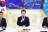 이재명 대통령과 정청래 더불어민주당 대표, 장동혁 국민의힘 대표가 중동전쟁으로 인한 경제 위기 속에서 7일 ‘여야정 민생경제협의체’로 회동했다. 이 대통령과 정 대표, 장 대표가 함께 만난 것은 작년 9월 8일 이후 약 7개월(211일) 만이다. 청와대 본관 인왕실에서 열린 회담에는 한병도 민주당·송언석 국민의힘 원내대표, 강준현 민주당·최보윤 국민의힘 수석대변인, 김민석 국무총리, 강훈식 청와대 비서실장과 홍익표 정무수석 및 정을호 정무비서관 등이 함께 했다. 이 대통령은 이날 추가경정예산안의 ‘고유가 피해지원금’을 강조하며 정치권의 협조를 당부했다. 이 대통령은 모두발언에서 “유류세 인상 및 그로 인한 물가 상승이 워낙 크기에 국민의 고통을 덜어주고자 소위 ‘전쟁 피해지원금’을 준비한 것”이라며 “포퓰리즘이 결코 아니다. ‘현찰 나눠주기’라고 하는 것은 과한 표현”이라고 지적했다. 이 대통령은 이어 소득 하위 70% 지원에 대해 “모든 국민에게 다 (지원)해드리는 게 마땅하지만, 재원의 한계로 국민의 30%는 실질적으로 고통을 겪으면서도 세금을 더 많이 내면서도 지원받지 못하는 부분에 대해 안타깝다”며 “너무 죄송하고 아쉽게 생각한다”고 말했다. 개헌에 대해서도 “대한민국 헌법이 제정된 지 너무 많은 세월이 지나 ‘좀처럼 안 맞는 옷’이 됐다”며 “국민의힘의 도움이 없으면 개헌은 불가능하다. 순차적·점진적 개헌이라는 측면에서 긍적적으로 수용해 달라”고 당부했다. 이 대통령은 “대한민국이 상당한 위기다. 우리가 통제할 수 없는 영역에서 벌어진 일들이기 때문에 대응이 쉽지 않다. 최선을 다하고 있으니 야당에서도, 여당에서도 많이 배려해달라”며 “이런 어려운 시기에는 내부적 단합이 정말 중요하다. 이럴 때 통합이 정말 빛을 발하지 않을까 싶다”고 강조했다. 장동혁 대표는 이날 이 대통령에게 “대통령께서 국정운영의 기조를 바꾸고 나라와 국민을 위해 올바른 정책을 추진한다면 야당도 얼마든지 협력하고 힘을 보탤 것”이라며 “국민 삶이 큰 어려움에 빠져있는 만큼 지금은 정치의 모든 역량을 민생에 집중해야 할 때”고 밝혔다. 그는 추경안에 대해 “꼭 필요한 곳엔 지원해야 마땅하지만 국민 70%에게 현금을 나눠주는 방식이라면 오히려 물가와 환율에 악영향을 줄 것”이라며 “잠깐의 기쁨으로 긴 고통을 사는 것이 될 수도 있다”고 우려했다. 그러면서 “우리 당에서는 불필요하고 부적절한 예산을 삭감하는 대신 꼭 필요한 국민 생존 7개 사업을 제안했다”며 “반드시 포함될 수 있게 관심을 가져주길 바란다. 그것이 협치의 시작”이라고 주장했다. 장 대표는 부동산 문제에 대해 “집 가진 분들은 공시가격 급등에 보유세 인상얘기까지 나오면서 지방선거 후에 닥쳐올 세금폭탄 걱정에 잠을 이루지 못하고, 집 없는 분들은 전월세 가격이 오르고 매물도 없어서 발만 구르고 있다"고 언급했다. 아울러 “지금 정치의 모든 역량을 민생에 집중해야 한다. 경제 챙기고 민생 살피기에도 시간이 부족한데, 조작기소 국정조사 같은 일로 시간을 허비해선 안 된다”며 “국민들 사이에선 ‘공소 취소한다고 물가가 떨어지냐’는 말까지 나오고 있다”고 했다. 장 대표는 비공개 회동에서 이 대통령에게 “지방선거와 동시에 하는 개헌에 대해서는 반대 입장이 당론”이라며 “개헌을 논의하기 전 중임 또는 연임하지 않겠다는 선언을 국민께 선제적으로 하라”고 요구했다고 최보윤 수석대변인이 국회 기자간담회를 통해 밝혔다. 이에 이 대통령은 즉답을 피했다고 최 수석대변인은 전했다. 정청래 대표는 추경안의 빠른 처리를 주장하며 야당의 협조를 요청했다. 그는 “역사적으로 가장 빠른 속도로 추경을 통과시키겠다는 말씀을 여러 차례 드렸는데, 야당에서 협조해주시길 바란다”고 당부했다. 이어 “평화로 전쟁을 막을 수는 있어도 전쟁으로 평화를 살 수 없다는 것을 요즘 더 절실하게 느낀다. 그래서 지금 추경이 필요하다”며 “추경은 타이밍이 중요하고, 우리가 응급처치 때도 산소호흡기를 제때 해야 생명을 구할 수 있는 것처럼 민생경제도 지금 골든타임이 매우 중요하다”고 주장했다. 한편 청와대는 이 대통령이 연임에 대한 질문에 즉답을 피했다는 최보윤 국민의힘 수석대변인의 전언에 대해 “전혀 사실이 아니다”며 “이 대통령은 야당이 개헌저지선을 확보한 상태에서 불가능하지 않느냐고 대답했다”고 설명했다. [ 경기신문 = 김재민 기자 ]