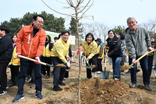 시흥시는 지난 3일 MTV 녹지(정왕동 2602번지)에서 제81회 식목일을 기념하는 ‘2026년 행복의숲 나무심기 행사’를 열었다. 이번 행사는 2025년 시흥시와 (사)평화의숲, (재)경기환경에너지진흥원이 체결한 ‘행복의숲 조성사업’ 업무협약의 연장선에서 추진됐다. 시는 지난해 1회차 행사에 이어 올해 두 번째 행사를 개최하며 민·관·공 협력 기반의 도시 녹화 모델을 지속적으로 확대하고 있다. 이날 행사에는 임병택 시흥시장을 비롯해 시흥시의회 의장과 시의원, (사)평화의숲 관계자, (재)경기환경에너지진흥원 관계자, 시민과 기업 임직원 등 약 500명이 참여했다. 참가자들은 해안 환경에 적합한 곰솔을 포함한 수목 3종, 총 1,307주를 식재했다. 특히 한국은행, ㈜한샘, 태림포장㈜, ㈜SPC삼립 등 기업이 참여해 ‘기업과 사회가 함께 성장하는 선순환 구조’의 모범 사례를 다시 한번 증명했다. 행사는 내빈 소개와 축사, 기업 기부증서 전달, 기념 촬영 등 식전 행사에 이어 수목 식재 순으로 진행됐으며, 식재 이후에는 참여자 간 소통을 위한 간단한 다과 시간도 마련됐다. 시는 행사에 앞서 지난 3월부터 참여 기업을 확정하고 대상지 지반 정비와 잡목 제거 등 사