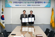 구리도시공사(이하 공사) 기술직 직원들의 직무역량 강화를 위해 건설기술교육원과 업무협약을 지난 26일 체결하고, 양 기관의 지속적인 협력을 약속했다고 전했다. 이번 협약은 공사의 전략 과제인 ‘임직원 전문성 및 역량 지속적 강화’를 실현하기 위한 방안으로 마련되었으며, 기술직 인력의 전문성과 현장 대응능력을 한층 강화해 적법하고 안전한 건설 공사를 진행하여 도시발전과 시민행복에 기여하는 것을 목적으로 한다. 업무협약을 통해 공사 기술직 직원 역량 발전을 위한 수요-맞춤형 건설기술 교육 프로그램을 개발할 예정이며, 경력 관리를 위한 지원을 위해 협력할 계획이다. 이 협약을 바탕으로 2026년부터 공사의 기술직을 대상으로 체계적인 연간 교육 프로그램이 실시될 예정이며, 공사 현장에 특화된 발주청 건설기술인 특화 교육, 에너지 설비 실습교육 및 재해예방을 위한 공사 감독 교육 프로그램 등이 실시될 예정이다. 공사 유동혁 사장은 “우리 공사의 기술직 직원들의 역량 발전을 위해 체계적인 교육훈련 프로그램을 지속 개발할 것이며, 이를 통해 구리시 공공시설을 이용하는 시민의 안전과 도시발전을 위해 앞으로도 최선을 다하겠다”라고 밝혔다. [ 경기신문 = 이화우 기자 ]