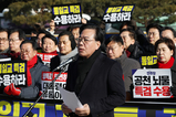 국민의힘은 20일 청와대 앞에서 ‘통일교 게이트·더불어민주당 공천 뇌물 특검 촉구 규탄대회’를 열어 엿새째 단식 농성 중인 장동혁 대표에게 힘을 실었다. 이날 청와대 사랑채 분수대 앞에서 열린 규탄대회에는 송언석 원내대표를 비롯한 지도부와 의원 60여 명이 참석해 ‘쌍특검’ 수용 촉구뿐만 아니라 여당이 장 대표의 단식 농성을 조롱하고 있다며 강력 비판했다. 송 원내대표는 “통일교 게이트, 공천 뇌물, 정치권의 뿌리 깊은 검은돈 뿌리 뽑자는 특검 요구를 왜 외면하고 있느냐”며 “민주당의 통일교 불법 자금 수수 의혹, 공천 과정에서의 뇌물 수수 의혹, 한마디로 검은돈을 뿌리 뽑기 위해서 양특검, 쌍특검 반드시 수용해야 한다” 밝혔다. 그는 이어 “통일교 게이트 특검은 전임 김병기 민주당 원내대표 시절에 상당 부분 의견 교환이 있었는데 갑자기 이재명 대통령이 검·경 합동수사본부에 수사 지시를 하면서 일이 뒤틀리기 시작했다”며 “우리 당에서는 통일교·신천지 2개 특검을 필요하다면 별도로 진행하자고 했으나 민주당은 이를 거부했다”고 주장했다. 또 “장 대표는 단식을 6일째 이어가고 있지만 민주당은 다수당이자 집권 여당으로서 매우 옹졸하고 비열한 언행을 보인다”며 정청래 민주당 대표를 겨냥해 “야당 대표 단식에 대해 ‘명분이 없는 단식이다. 밥 먹고 싸우라’ 하면서 조롱을 하고 있다. 반지성, 몰지각의 언어폭력 집단 각성하라”고 비판했다. 특히 “진실 앞에서 입을 꾹 닫고 국민적인 중대 의혹 앞에서 특검을 회피하면서 야당의 처절한 호소에 조롱으로 응답하는 것은 집권 여당의 너무나 옹졸하고 비열한 민낯”이라고 질타했다. 그는 앞서 열린 원내대책회의에서 홍익표 신임 청와대 정무수석에게 축하 인사를 전하며 “홍 수석의 임명 후 첫 행보는 장 대표 단식 농성장 방문이어야 할 것”이라며 “그리고 청와대로 돌아가서 이 대통령에게 ‘쌍특검 수용’과 ‘이혜훈 장관 후보자 지명철회’를 건의해야 할 것”이라고 주장했다. [ 경기신문 = 김재민 기자 ]