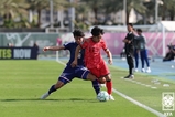 6년 만에 아시안컵 우승에 도전했던 대한민국 23세 이하(U-23) 축구대표팀이 '숙적' 일본에게 패하며 결승 진출에 실패했다. 이민성 감독이 이끄는 한국은 20일(이하 한국시간) 사우디아라비아 제다의 킹 압둘라 스포츠 시티 홀 스타디움에서 벌어진 2026 아시아축구연맹(AFC) U-23 아시안컵 4강에서 일본에게 0-1로 졌다. 한국은 2020년 이후 6년 만에 우승에 도전했지만, 3/4위전으로 밀려났다. 이날 한국은 호주와의 8강전과 같은 선발 라인업을 내세웠다. 백가온(부산 아이파크)이 최전방에 섰고, 측면에는 김용학(포항 스틸러스)과 강성진(수원 삼성)이 나섰다. 중원은 김동진, 강민준(이상 포항), 배현서(경남FC)로 구성했다. 수비라인은 장석환(수원), 신민하(강원FC), 이현용(수원FC), 이건희(수원)를 내세웠으며 골키퍼 장갑은 홍성민(포항)이 꼈다. 한국은 2028년 로스앤젤레스(LA) 올림픽을 대비해 21세 이하(U-21) 선수들로 팀을 꾸린 일본에게 고전했다. 전반 3분에는 일본 이즈미 카이토의 중거리 슈팅이 골문을 위협했다. 전반 11분에는 미치와키 유타카에게 골키퍼와 1:1 찬스를 내줘 실점 위기에 몰렸지만, 미치와키의 슈팅이 골대를 살짝 벗어나며 한숨을 돌렸다. 불안한 경기력을 이어가던 한국은 결국 전반 36분에 리드를 내줬다. 코너킥 수비 상황에서 나가노의 헤더를 골키퍼 홍성민이 막아냈으나, 고이즈미 가이토가 흘러나온 공을 마무리했다. 전반을 0-1로 마친 한국은 후반에 만회골을 넣기 위해 분전했지만 상대 골망을 흔들지 못했다. 후반 17분 코너킥 공격 상황에서는 강성진의 왼발 슈팅이 상대 골키퍼 선방에 막혔고, 후반 28분 정승배(수원FC)의 슈팅은 옆그물을 향했다. 한국은 오는 24일 같은 장소에서 베트남, 중국 간 준결승 대결의 패자와 3/4위전을 치른다. [ 경기신문 = 유창현 기자 ]