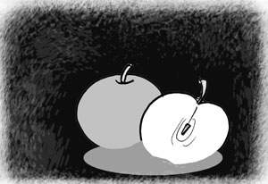 그 실상과 가상이 주역의 분괘 원리처럼 인연을 일으켜 허구의 세계를 만들어 내게 되는데, 결국 실상의 사과는 진정한 자아 그대로일 뿐 늘지도 줄지도 변하지도 않았다는 말이다.
