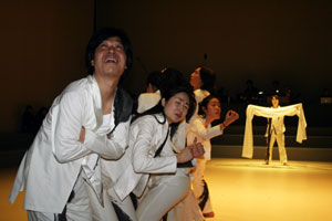 안산문화예술의전당은 11일 오후 3시 전당 내 달맞이극장에서 제작발표회를 갖고 ‘반쪽이전’(2004년), ‘꼭두별초’(2005~2006년)에 이은 세번째 자체제작극 ‘선동’의 일부 장면을 공개했다.
