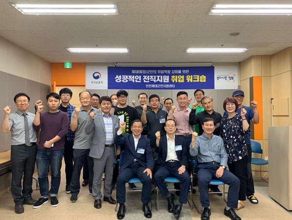 인천제대군인지원센터는 19일 중·장기복무 제대(예정) 군인들을 대상으로 취업워크숍을 개최했다. 이번 취업워크숍에서는 전역 후 비상계획관으로 근무하는 제대군인을 강사로 초청해 취업 노하우 및 전략에 대한 강의를 진행하고, 제대군인 지원제도와 구직방법을 교육했다. /박창우기자 pcw@