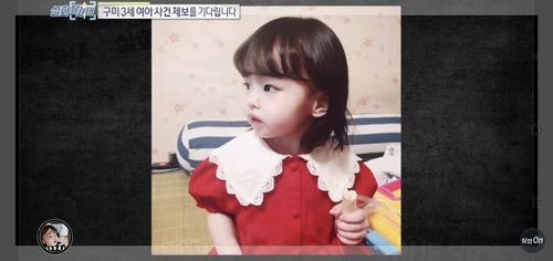 MBC '실화탐사대'는 지난 13일 유튜브 채널에 '구미 3세 여아 사건 제보를 기다립니다'라는 제목의 영상을 올리면서 아이의 얼굴 사진을 공개했다.