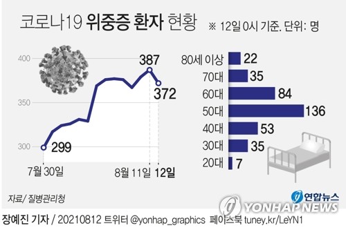 최근 위중증 환자 수는 지난달 중순까지 150명 내외를 유지하다가 이달 들어 300명대를 기록하며 계속해서 늘어나는 추세다. 주간 사망자 수도 함께 늘어 지난주 21명으로 집계됐다.