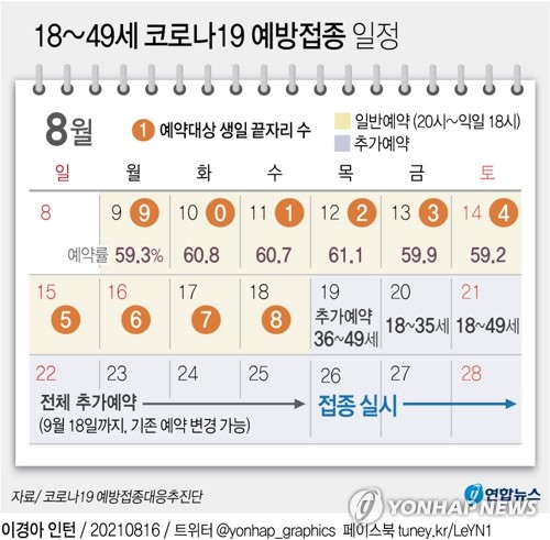 ◇ 18∼49세 대상 '10부제' 예약률 63.9%…오후 8시부터 추가 예약