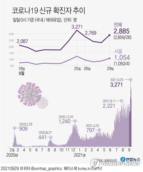 한편 방대본은 "수도권 소재 대형병원 집단감염으로 의료대응 여력이 감소하고 있다"며 "더욱이 추석 이후 가족·지인 간 감염에 의한 학교 내 전파, 연휴 이후 외국인 감염 확산 가능성이 있다"고 우려했다.