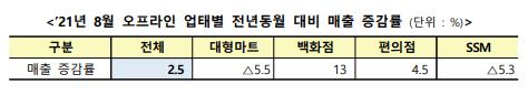 산업통상자원부가 지난달 28일 발표한 '8월 주요 유통업체 매출동향'에 따르면 8월 한달동안 SSM은 전체 매출이 전월 대비 5.3% 하락했다.