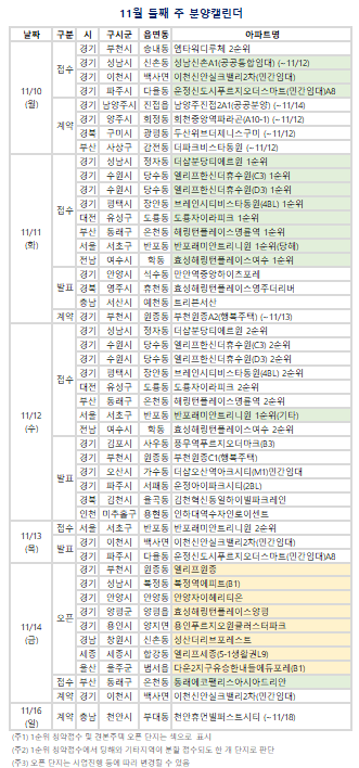 부동산R114에 따르면 11월 둘째 주 전국 12개 단지가 분양 일정을 시작한다. 서울에서는 삼성물산이 시공하는 '반포래미안트리니원', 경기에서는 '브레인시티비스타동원'(평택시 장안동), 대전에서는 '도룡자이라피크'(유성구 도룡동) 등이 청약에 돌입한다.