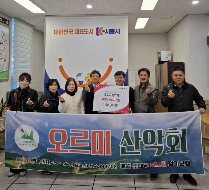 시흥시 매화동 오르미 산악회는 지난 10일 매화동 행정복지센터를 방문해 지역 내 저소득 취약계층을 위한 후원금 100만 원을 전달했다.
