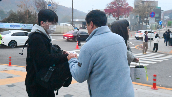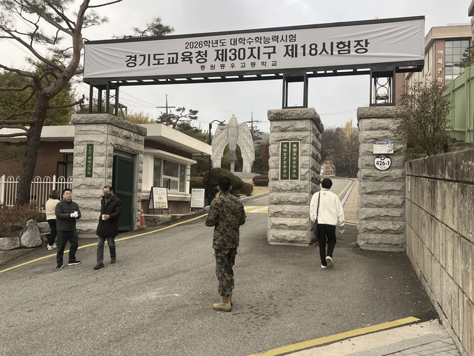 수원 동원동우고등학교(제30지구 제18시험장) 앞 풍경도 크게 다르지 않았다. 교문 앞에서 한 군인 아버지는 수험생 아들과 어깨동무를 하며 인증샷을 남겼다. “화이팅!” 짧고 묵직한 한마디 뒤로, 아들이 교문을 들어서는 모습을 아버지는 말없이 오래 바라봤다.
