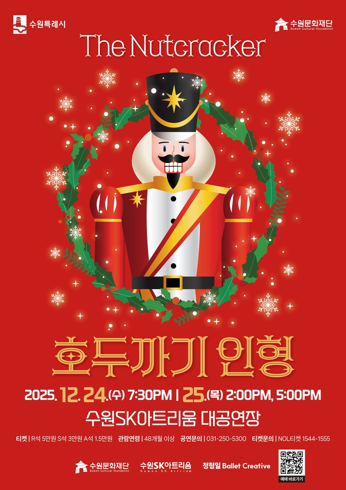 수원문화재단 관계자는 “크리스마스 시즌 대표 레퍼토리인 ‘호두까기 인형’은 아이들에게는 환상적인 동화의 세계를, 어른들에게는 추억과 감동을 전하는 공연”이라며 “겨울의 낭만과 따뜻한 감동을 가족과 함께 나누길 바란다”고 말했다.