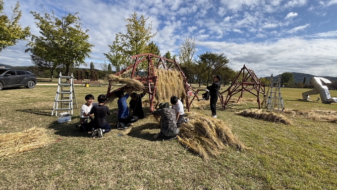 여주 농업의 대표 작물인 쌀을 수확하고 남은 짚을 활용해 만든 이번 조형물은 전통 농경문화와 지역 공동체 정신을 예술적으로 재해석한 작업이다.