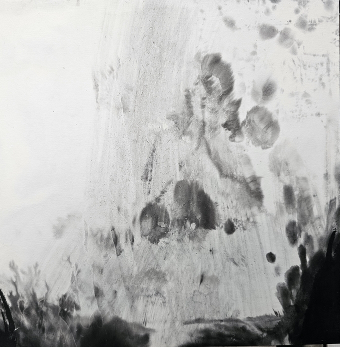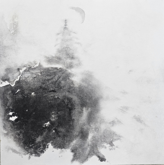 그렇기에 먹의 번짐은 형태와 비형태의 경계를 허물고 그 안에 존재하는 사라지면서 동시에 드러나는 표현이기도 하다. 그는 이 같은 독특한 화법을 일반 봇과 함께 나뭇잎을 사용했으며, 공간의 옅은 배경에는 자연스러움을 더했다.