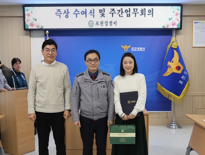 포천경찰서는 1일, 보이스피싱(로맨스 피싱) 범죄 예방에 결정적 기여를 했던 112신고 공로자에게 감사장과 신고 포상금을 수여했다.