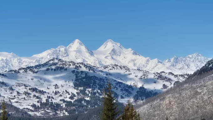 드디어 주변이 온통 흰 눈에 덮인 마지막 고갯마루를 넘자, 눈 부신 햇살 아래의 빛나는 벨루하 가 신비로운 자태를 드러내었다. 순간 반사적으로 아니 구름이 벨루하를 언제 가릴지 모른다는 생각에 카메라를 꺼내 연신 셔터를 눌렀다.