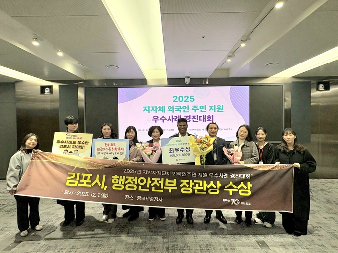김포시가 지난 1일, 정부세종청사에서 행정안전부가 주관한 '2025 외국인주민 지원 우수사례 경진대회'에서 최우수상을 수상했다고 밝혔다. 이로써 김포시는 특별교부세 1억 원을 지원받게 됐다.