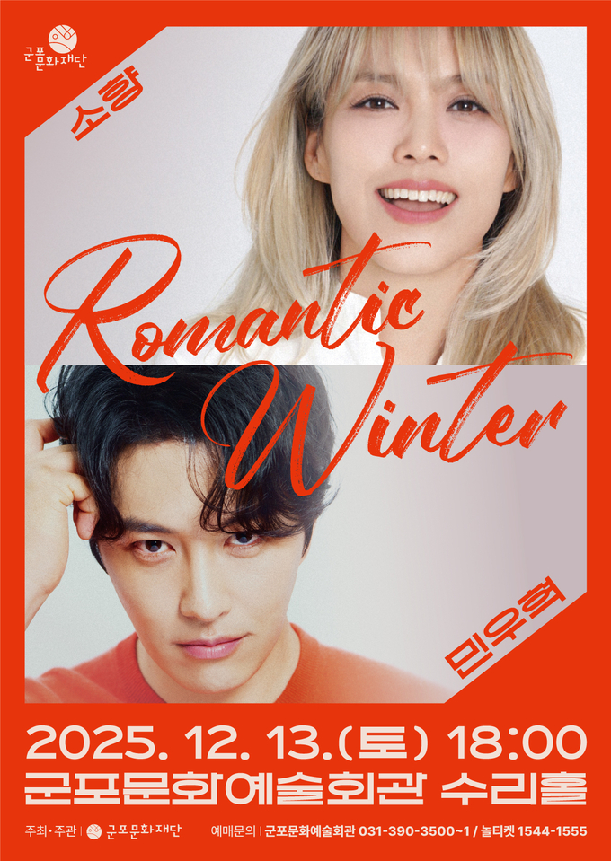 군포문화재단은 오는 13일 오후 6시, 군포문화예술회관 수리홀에서 연말 기획공연 “소향×민우혁 콘서트 <Romantic Winter>”를 개최한다.
