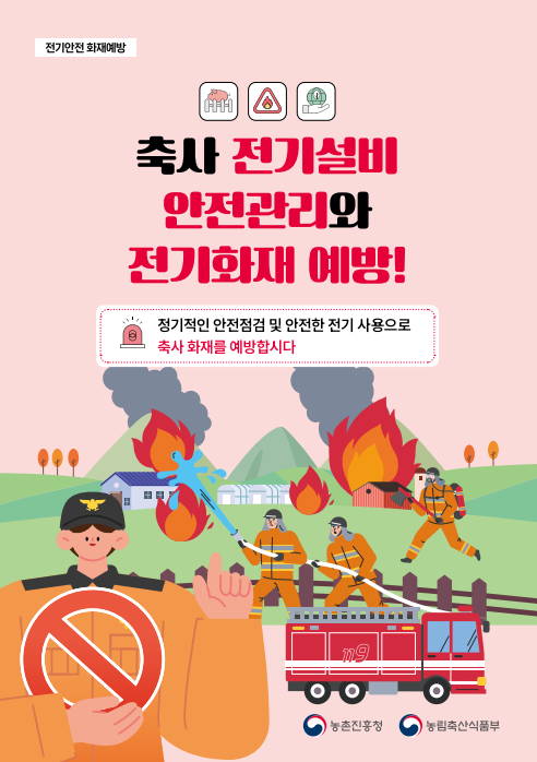 도는 농장규모에 맞는 전력사용, 축사 내외부의 전선 피복상태 점검, 먼지나 거미줄 제거, 축사 전기설비 및 전기기구의 정기적인 점검 실시와 함께 가축재해보험 가입 시 가축과 축사까지 가입하도록 안내하고 있다.
