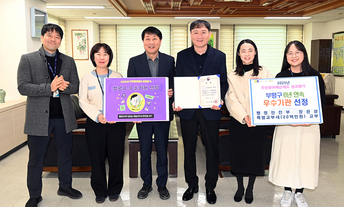 이번 평가는 전국 243개 지방자치단체를 대상으로 주민참여예산제도 운영의 민주성, 책임성, 효율성, 발전 가능성 등을 종합적으로 분석해 이뤄졌다. 행안부 성과평가가 도입된 지난 2020년 이후 6년 연속 ‘우수’ 등급을 받은 인천지역 군·구는 부평구가 유일하다.
