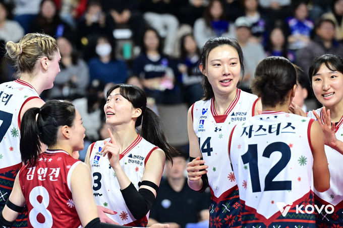 이날 현대건설 정지윤은 팀 내 최다인 25점을 기록했고 양효진이 19점, 자스티스 야우치(등록명 자스티스)가 14점으로 지원했다.