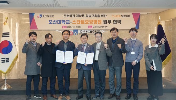 오산대학교는 지난 24일 대학본관 중회의실에서 스타트요양병원과 간호학과 재학생 실습 교육을 위한 업무 협약을 체결했다고 26일 밝혔다.