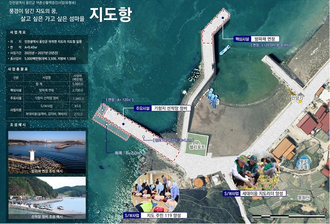 시는 낙후한 어촌의 생활환경을 도시 수준으로 개선하기 위해 강화군 장곳항·주문항·선두항과 옹진군 지도항, 중구 예단포항 등 5곳에 어촌 신활력 증진 사업을 추진한다.