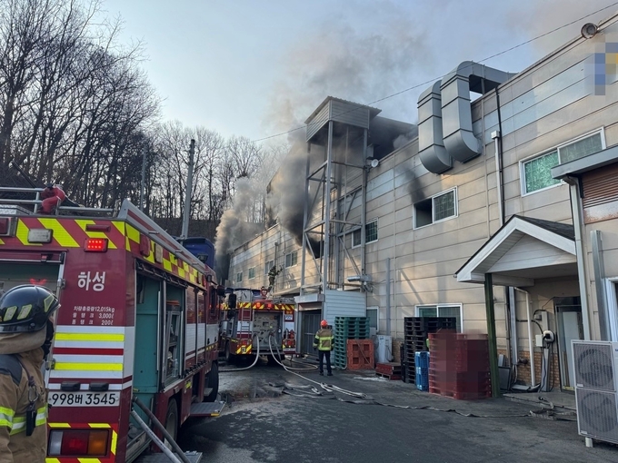 김포시 월곶면 한 화장품 제조 공장에서 화재가 발생해 소방 당국이 긴급 출동했다.