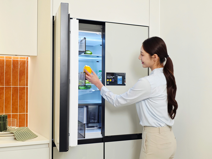 주방에서는 '비스포크 AI 하이브리드 4도어 키친핏 맥스' 냉장고를 비롯 인덕션·정수기·오븐·후드 등 가전들이 연동돼 식재료를 스마트하게 관리하며, 냉장고는 AI 푸드매니저로 식재료 리스트를 생성하고 오토 오픈 도어로 음성 명령에 문을 연다.