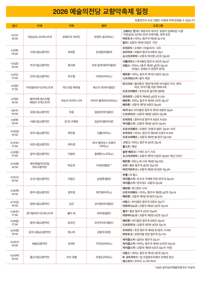 올 봄, '고품격 선율'로 즐거움 전할 '2026 예술의전당 교향악축제' 예매 스타트
