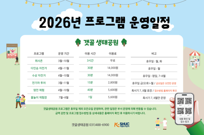 시흥도시공사는 2026년 3월부터 시민과 방문객들이 일상에서 여가를 즐길 수 있는 기회를 제공하기 위해 갯골생태공원의 자연환경을 활용해 ‘계절별 체험 프로그램’을 운영한다고 19일 밝혔다.