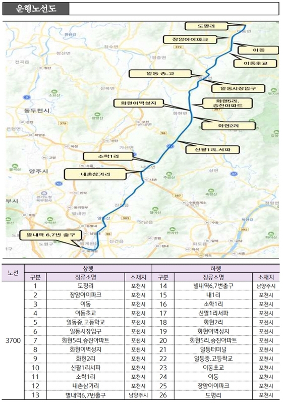 포천시는 다음 달 4일부터 “경기도 광역 공공버스 신규 노선에 3700번(이동면 도평리~남양주 별내역)을 정식 운행한다”고 밝혔다.