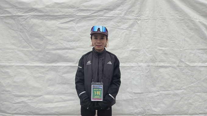 22일 수원종합운동장에서 열린 2026 경기수원국제하프마라톤 마스터스 10㎞ 여자 우승을 차지한 강경아(아디다스 스쿼드팀·48) 씨는 "올해로 3연패인데 너무 기분 좋게 달렸다"며 기쁨을 감추지 못했다.