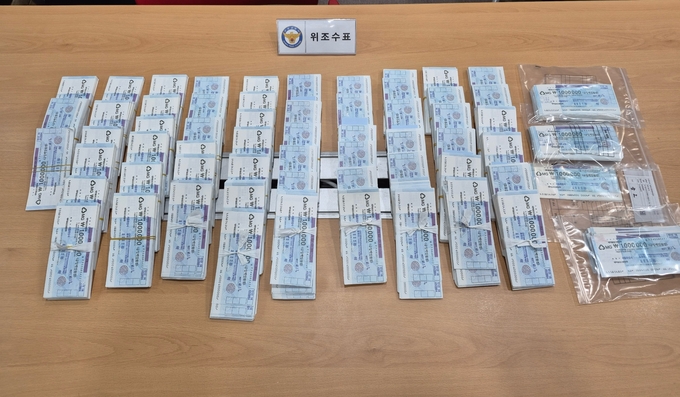군포경찰서는 지난해 7월 군포 소재 금융기관에서 “위조수표 100만 원권 5매를 제시하며 입금하려는 고객이 있다”는 112신고를 접수하고, 위조수표를 행사하려던 피의자 B씨 주거지 압수수색해 은닉한 수표 300매를 추가 발견, 현장에서 피의자 B씨를 긴급체포했다.