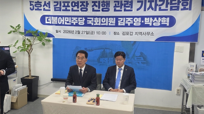 더불어민주당 김주영(김포갑)·박상혁(김포을) 국회의원은 27일 오전 11시 더불어민주당 김포갑지역사무실에서 기자회견을 열고 “예타 결과 발표 시점이 3월로 예상된다”고 밝혔다. 두 의원은 당초 약 9개월로 예상됐던 예타가 1년 이상 지연되면서 시민 불안과 피로감이 커진 상황을 언급하며, 정부 차원의 적극적인 의지를 강조했다.