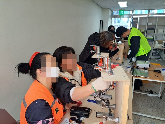 이날 교육은 전동공구의 올바른 사용법부터 방문 손잡이·도어록 교체, 화장실 수전 및 카트리지 분해 결합, 테프론 테이프 시공까지 실생활에 즉시 적용 가능한 교육을 실습했다.