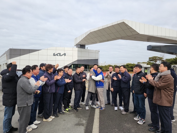 기아자동차 노동조합 화성지회장을 지낸 윤민희 전 지회장이 3일 화성시 기아자동차 화성공장 정문 앞에서 기자회견을 열고 진석범 화성특례시장 예비후보에 대한 지지를 공식 선언했다.