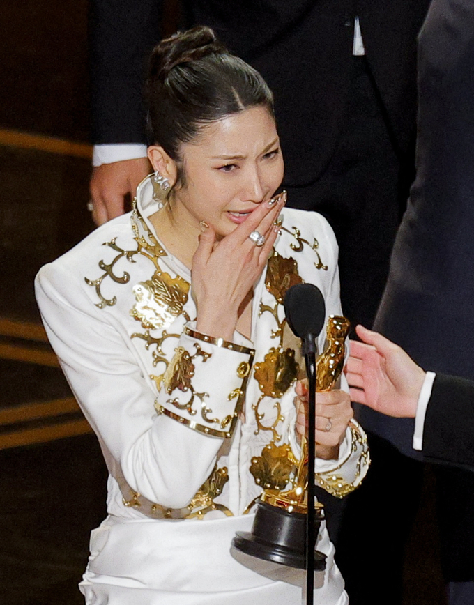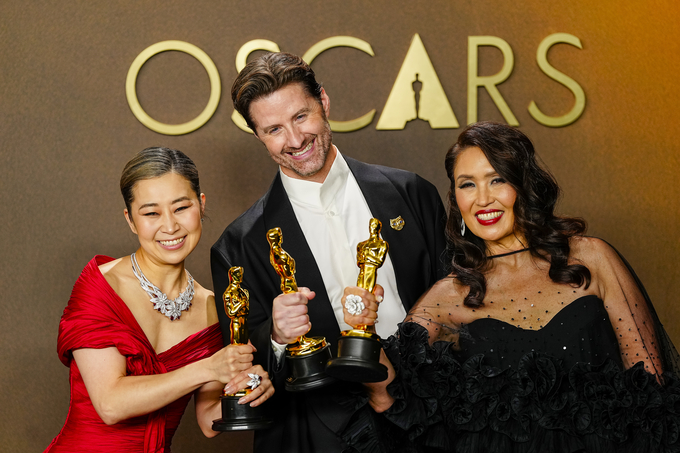 연출자 매기 강 감독은 '데몬 헌터스' 주제곡 '골든'(Golden)의 노랫소리에 맞춰 빨간 드레스를 입고 무대에 올라 장편 애니메이션 부문 오스카 트로피를 거머쥐었다.