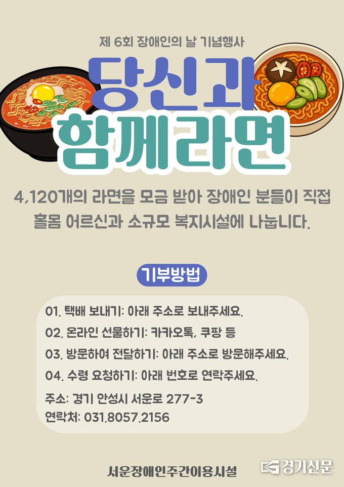 “라면 하나가 희망이 됩니다”… 안성 서운장애인시설, 나눔 캠페인