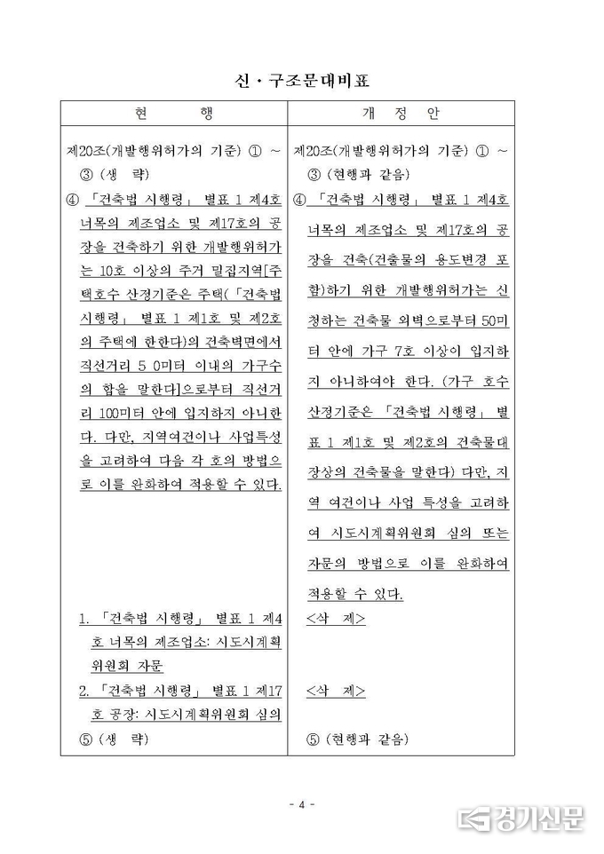 100m 기준 → 50m·7호 기준으로 완화… 사실상 규제 무력화 지적