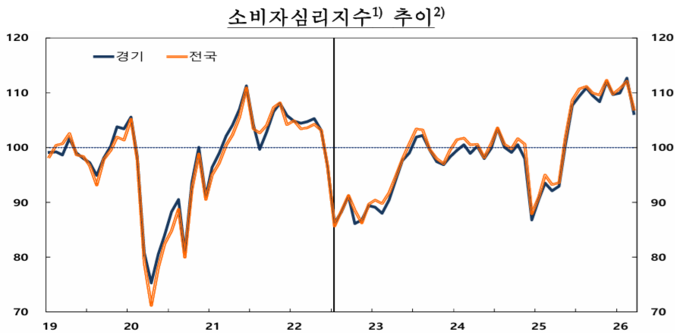 한국은행 경기본부가 ‘2026년 3월 경기지역 소비자동향조사’ 결과를 발표했다.