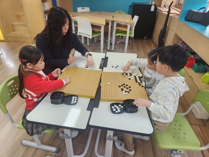 바둑판 위에 돌을 내려놓는 아이들의 손길이 분주하다. 작은 손으로 바둑알을 쥔 채 다음 수를 고민하는 표정은 사뭇 진지하다.