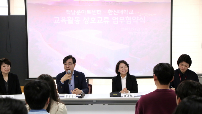한신대학교와 백남준아트센터는 지난 27일 백남준아트센터 2층 세미나실에서 교육활동 상호교류 및 공동 발전을 위한 업무협약(MOU)을 체결했다.