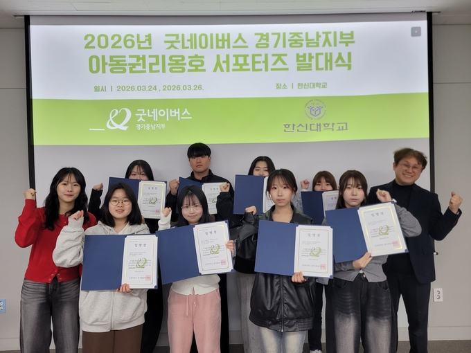 굿네이버스 경기중남지부는 지난 9일 한신대학교 휴먼서비스대학 재학생을 대상으로 아동권리 증진을 위한 ‘아동권리옹호서포터즈’ 발대식을 진행했다고 전했다.
