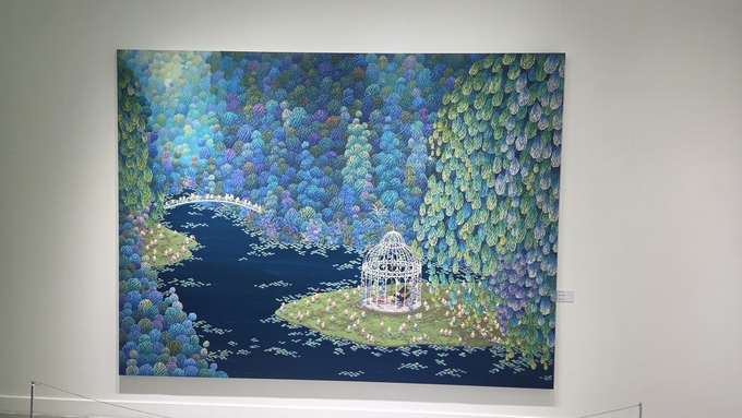 진영 작가의 작품에는 모두 동일한 하얀색 앵무새가 등장한다. 달과 별이 떠있는 호수 뒤로 작게 그려진 앵무새들은 아이들의 상상력을 자극하고, 집중력을 강화시키며 전시의 재미를 더한다.