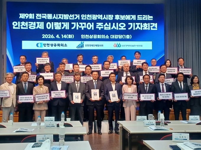 인천상공회의소와 인천경제단체협의회, 인천경제정의실천시민연합은 14일 인천상의 대강당에서 기자회견을 열고 인천광역시장 후보자들에게 전달할 정책 제안서 ‘인천경제 이렇게 가꾸어 주십시오’를 공개하며 적극적인 정책 반영을 촉구했다.