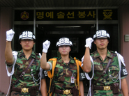 (사진설명: 용인 금학천 다리 밑에서 급류에 휘말려 위험에 처한 민간인의 생명을 구한 3군사령부 헌병대 소대장 유경숙 소위(가운데)와 선종희 상병(왼쪽), 김우종 상병(오른쪽).