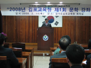 본지 최연식 제2사회부 부장(김포 강화주재·시인)이 지난 14일 김포교육청 강당에서 교육청직원들을 대상으로 특강을 실시했다.
